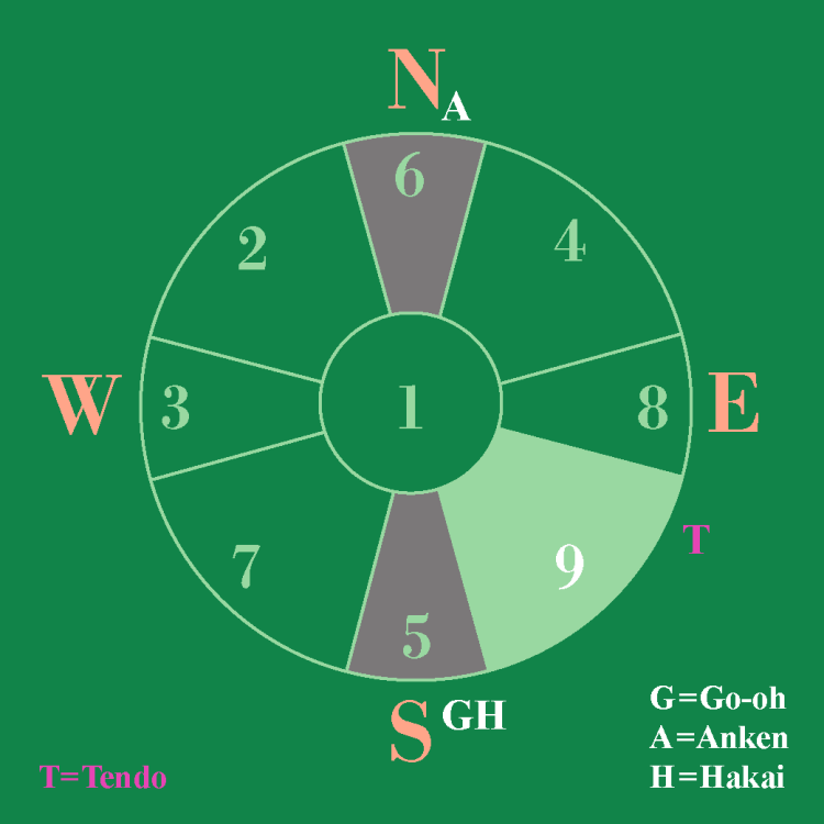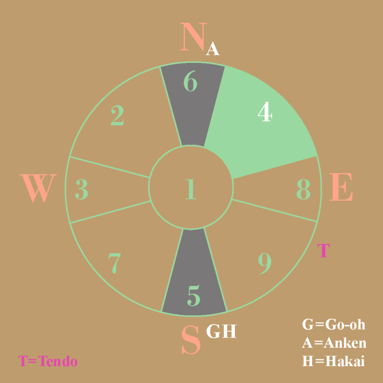 Gray=Unlucky spot (Go-oh, Anken, Hakai)