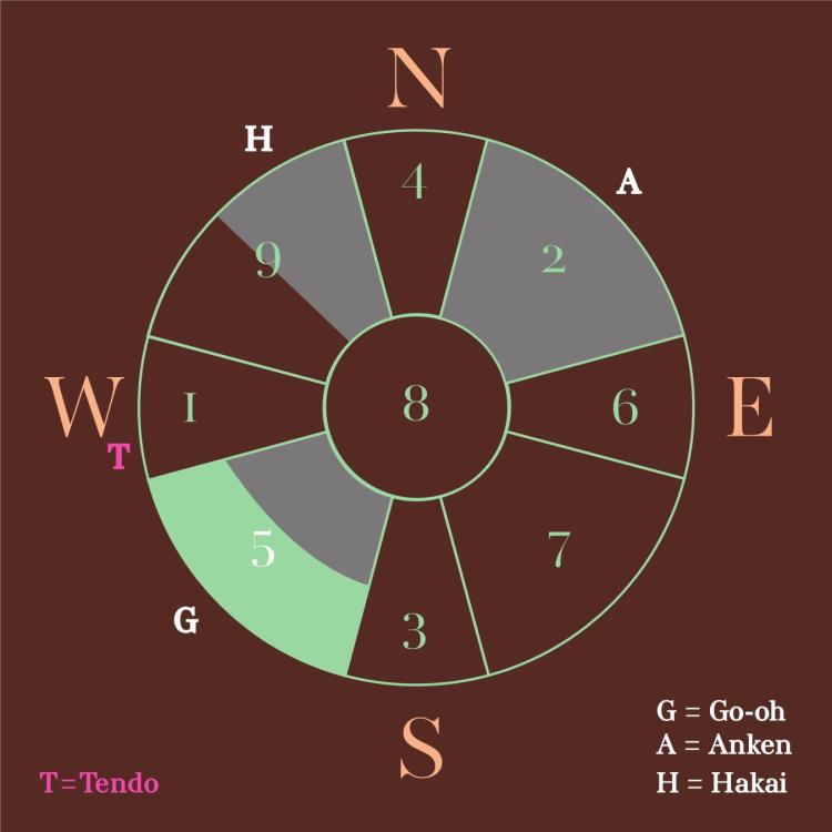 May Star # 5 is located southwest, above Star # 2. This is the position that represents the mother, and the point of the luck is the tolerance to accept like the mother.