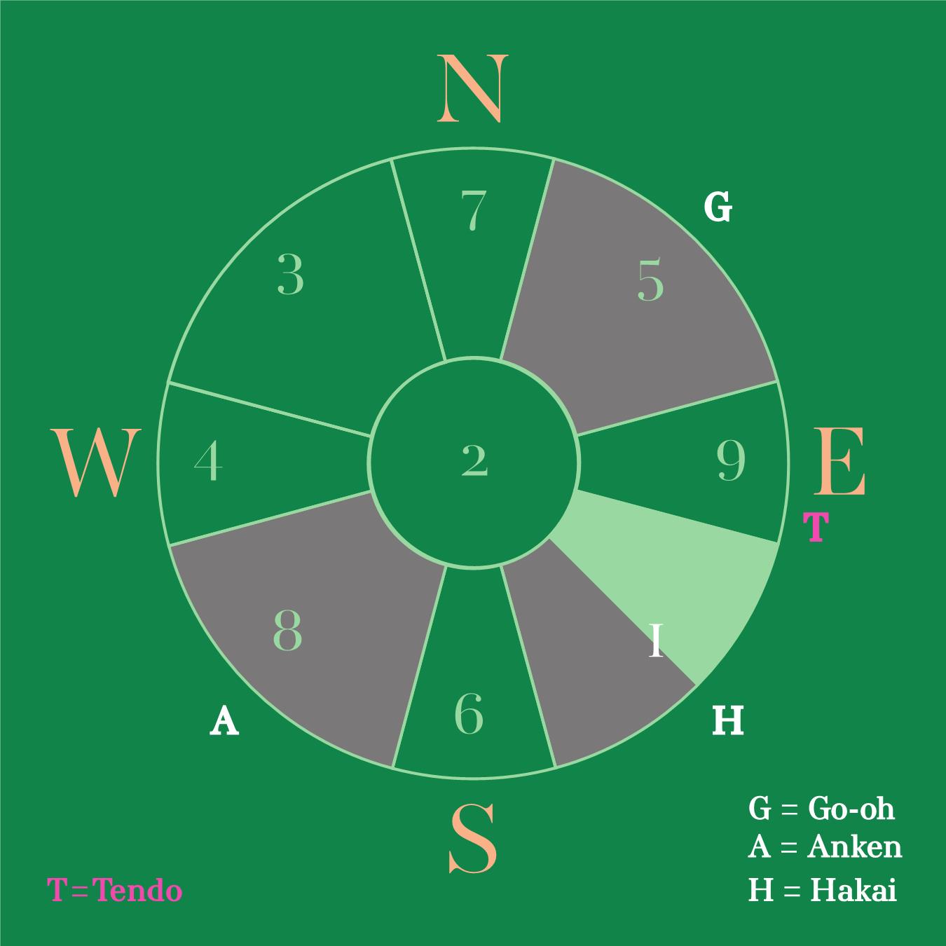 November Star #1 locates southeast above the original compass chart of Star #4. This is the time when the trees grow thick and show development. It is also time to make adjustments, like pruning an overgrown tree. It is also the time to get rid of unnecessary things. It comes with high power. Disturbances can come in near the end of things. Don’t slack off until the end, check it out, but next month will be the time to stop, so please move forward as much as you can.