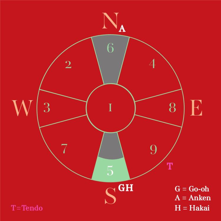 December, South, locates on the original compass chart for Star #9 with Hakai power. There is power here that the sun hits and attracts attention. Your actions will be evaluated whether they are good or bad. On the opposite pole is star #6 with Anken power. Both of them have the power of fighting spirit, so please be careful.