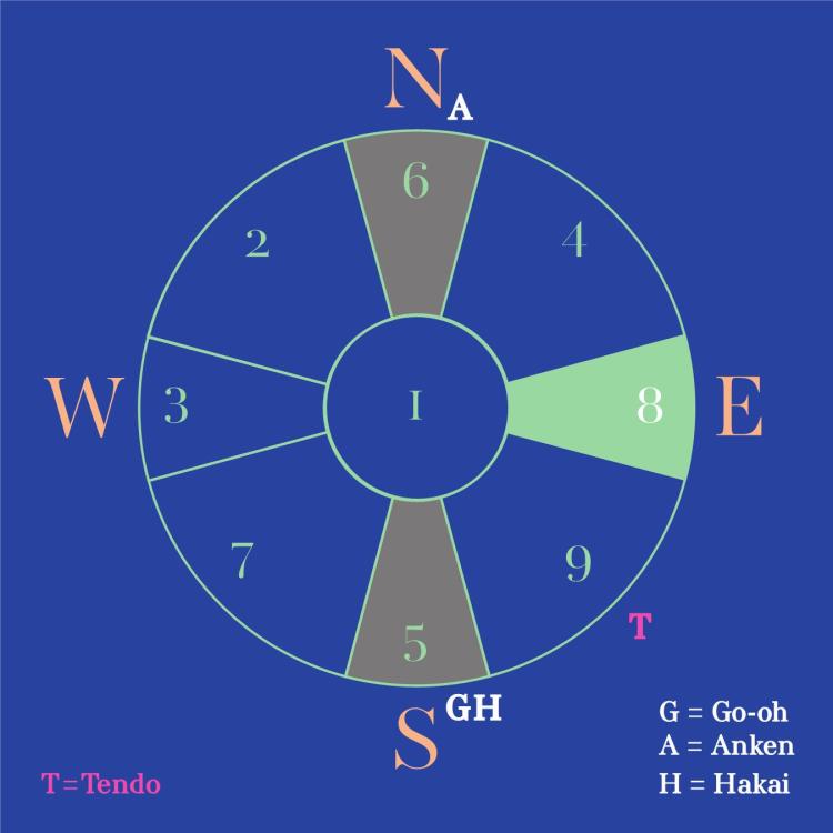 In December, Star #8 locates on east, above Star #3’s original compass chart. The morning sun has the power to rise here. It’s time to start something new and it’s time for a challenge. At the opposite pole is star #3. The power of the rising sun doubles, but Star #3 has the characteristics of talking and carelessness, so be careful speaking.