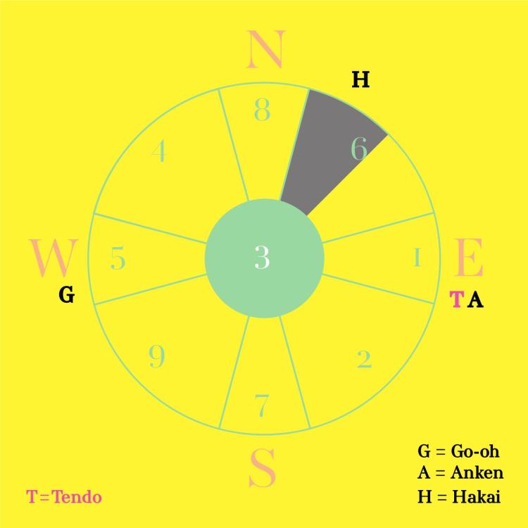 July Star #3 will be located in the center. Receives the power of Star #5. This place has the power of the emperor, the power of regeneration. Star #4 is located in the center of the yearly compass chart.