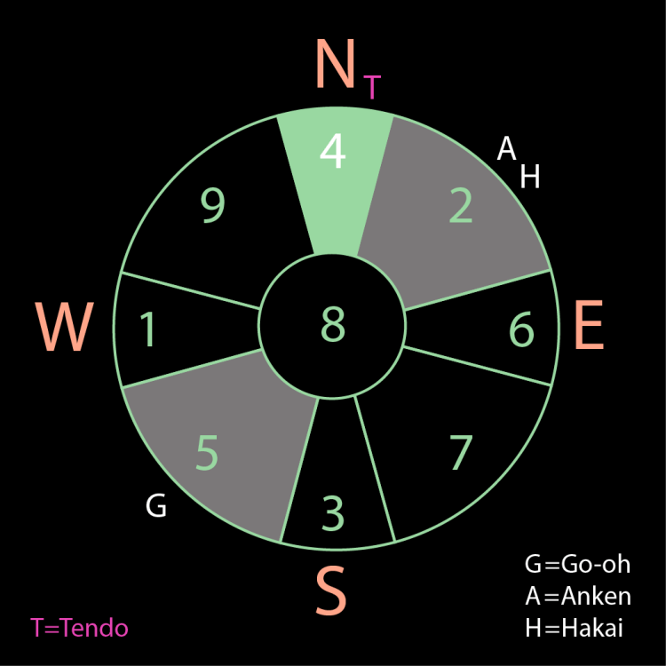In August , Star #4 will be located on north, the original compass chart of Star #1(kannyu-term). It is the power that affects you. (Power of hardship, human relations , hole, running water, first of all)