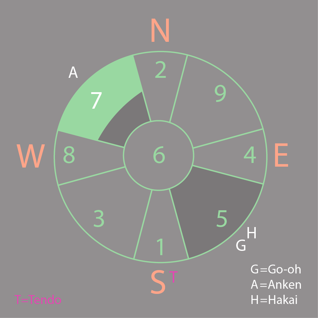 Also, Star #7 is located in Star 4 of the annual compass chart along with hakai-power (the unexpected may happen, respond flexibly). It is the power that influences your environment. (The power of prosperity, continuity, trust, order, expansion, good relationships, marriage, long distance).
