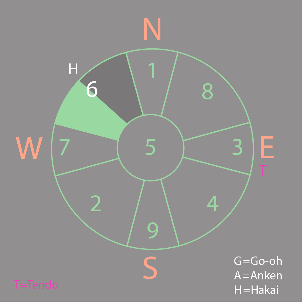Also, Star #6 is located in Star #4 of the annual compass chart along with hakai-power (the unexpected may happen, respond flexibly). It is the power that influences your environment. (The power of prosperity, continuity, trust, order, expansion, good relationships, marriage, long distance)