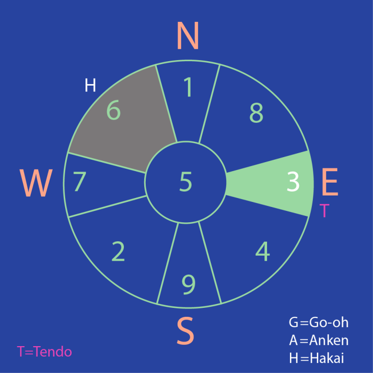 Also Star #3 is located on Star # 1 on the Yearly Compass Chart. It is the power that affects your environment. (The power of calming, hardship, human relationships, holes, running water, the first of all)
