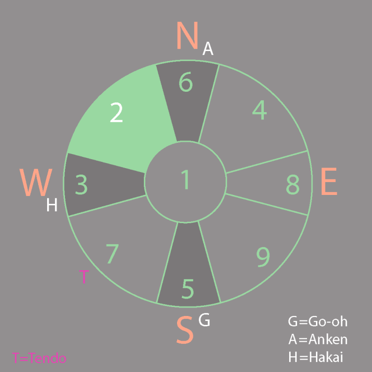 Also Star #2 is located above Star#3 on yearly compass chart with Hakai-power for yearly.( power of development, progress, sound, voice, manifestation, education, learning)
