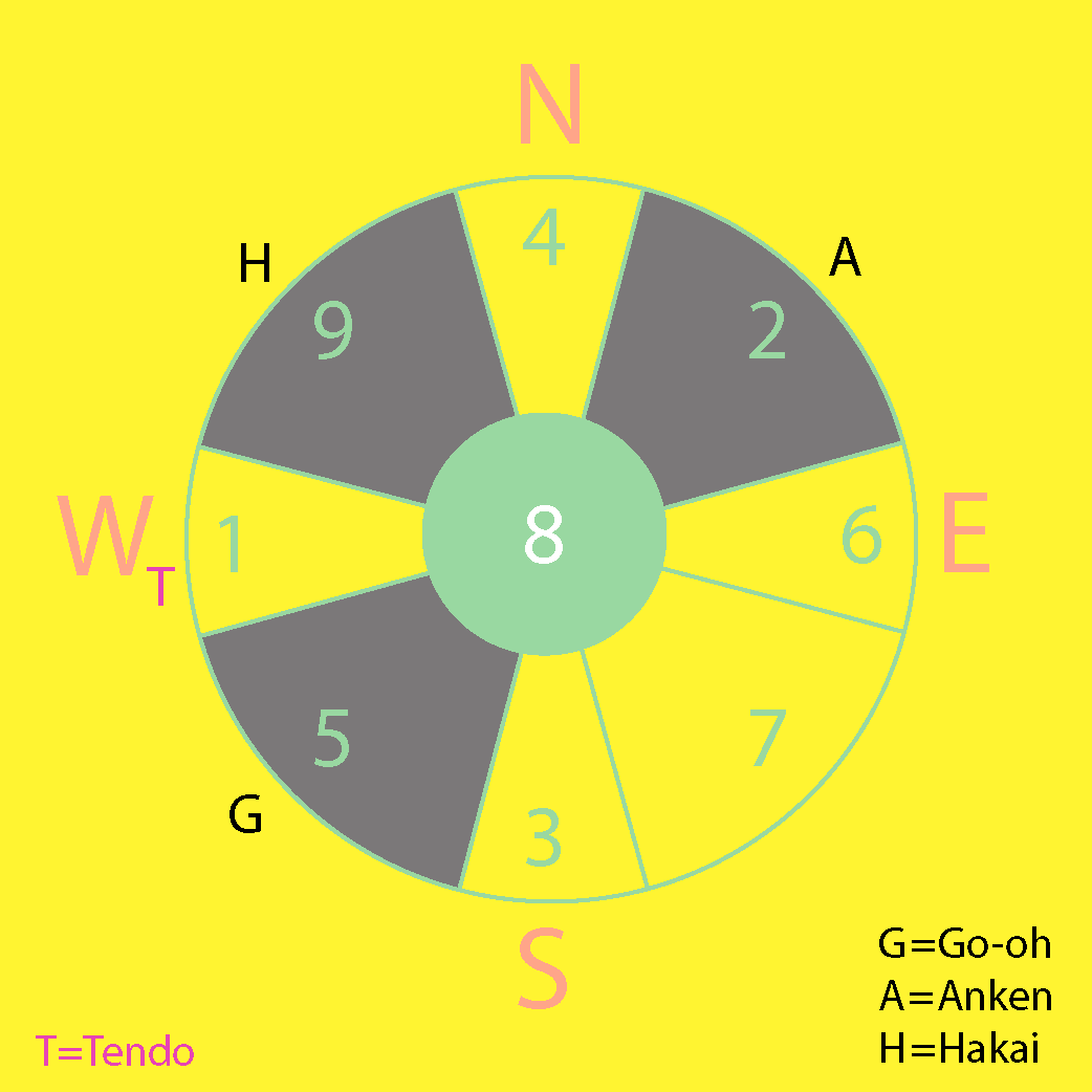 Star#8 also located on Star #2 above the yearly compass chart.( power of foundation, woman, mother, earth, nurturing, tolerance ,support- role)