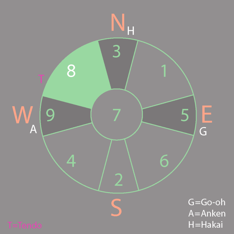In June, Star #8 resides in the Northwest, overlapping with the original position of Star #6. This alignment brings Tendo Power—representing achievement, justice, authority figures (like fathers, bosses, husbands), business, and volunteer efforts.