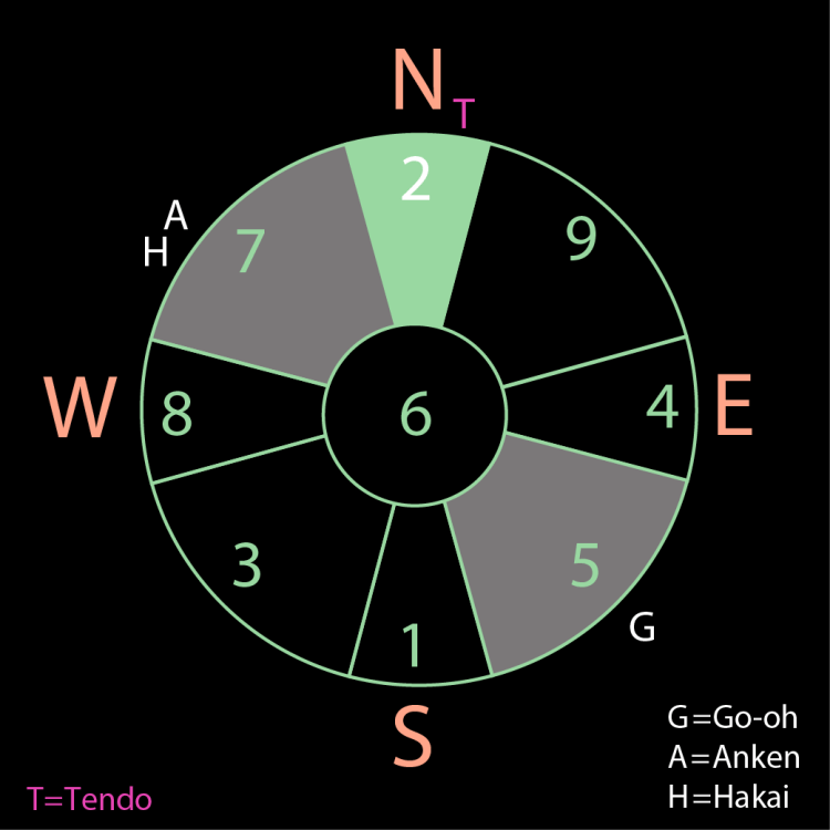 In April, Star #2 is positioned in the “North.” In the original compass positions, this is the home of Star #1. This phase is called “Kanyu” (The Pit) and is symbolically associated with “Winter.” However, since you receive Tendo Power this month, you will have heavenly support.