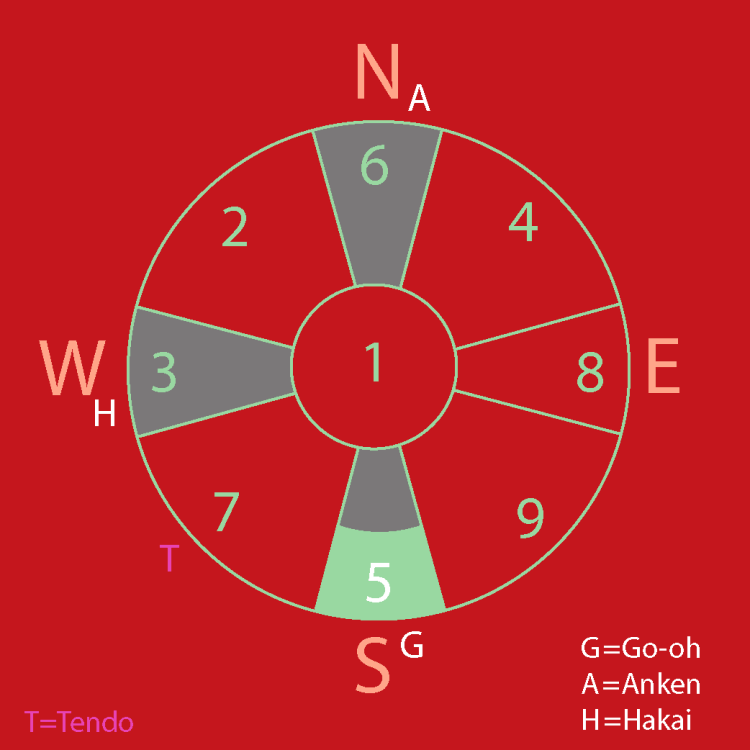 In March , Star #6will be located on North , above the Star #1’s original compass chart. This is called the Kannyu-term, and in term of season, it is winter. ( Power of human relationships,hardship , sickness,hole, running water, first of all)