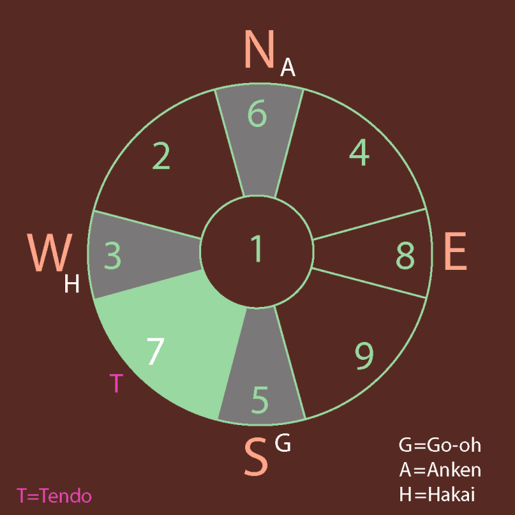 In March, Star #7 is located on the southwest, above the original compass chart of Star #2 with Tendo-Power.(12-24times more lighting from universe) There is the power of mother, earth, and nurturing. Tolerance and generosity are requested .