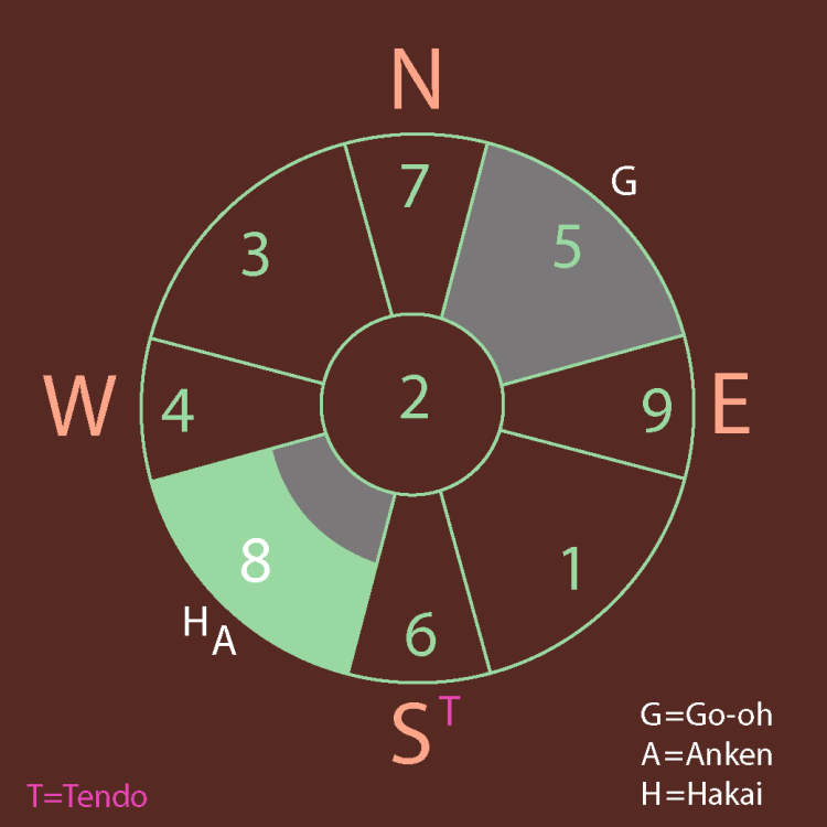 The monthly Hakai- power will be in the southwest where Star #8 is located, and the Tendo- power will only be on the monthly compass chart. In February, it will be in the south, Star #6.