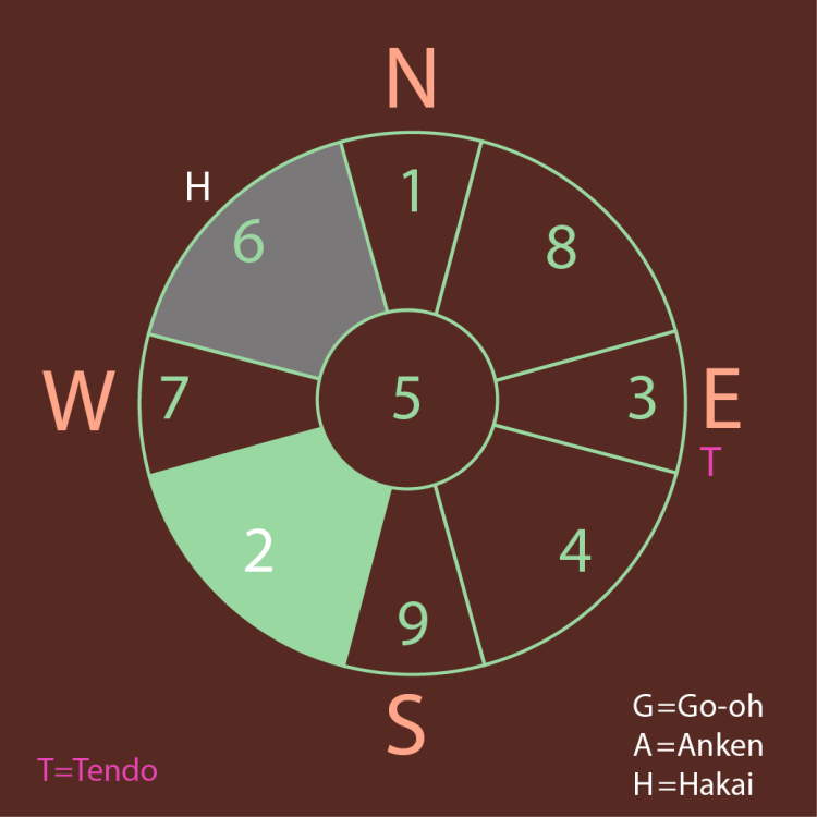 In December , Star#9 is located in the North, the original compass chart of Star 1 (Kannyu陥入 -period). It is the force that influences you. (difficulties, sickness, human , holes, water, first of all)
