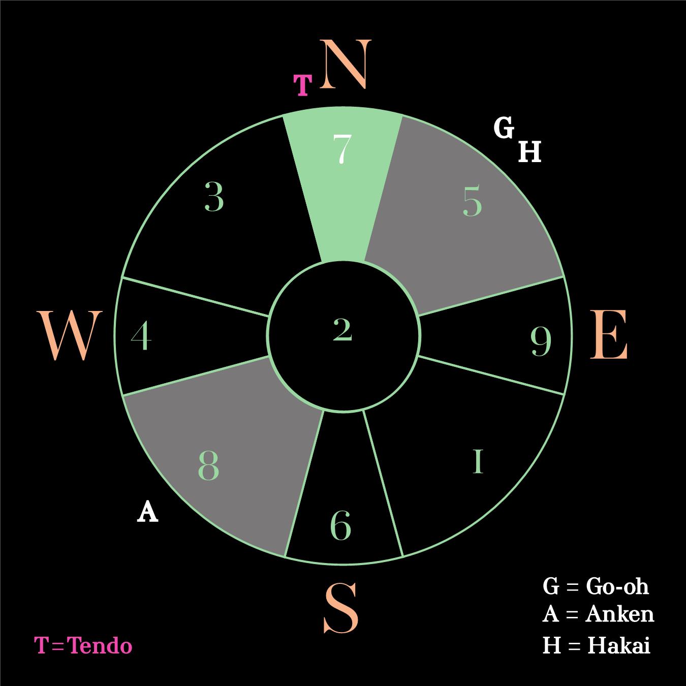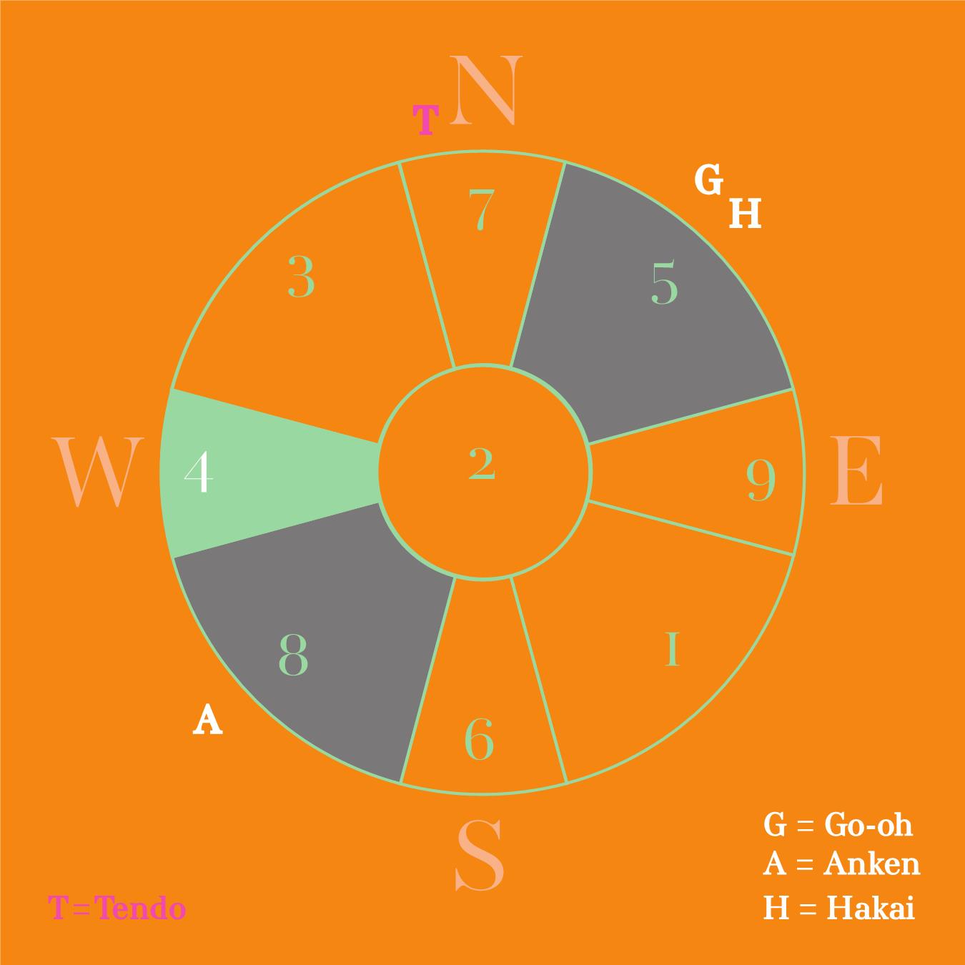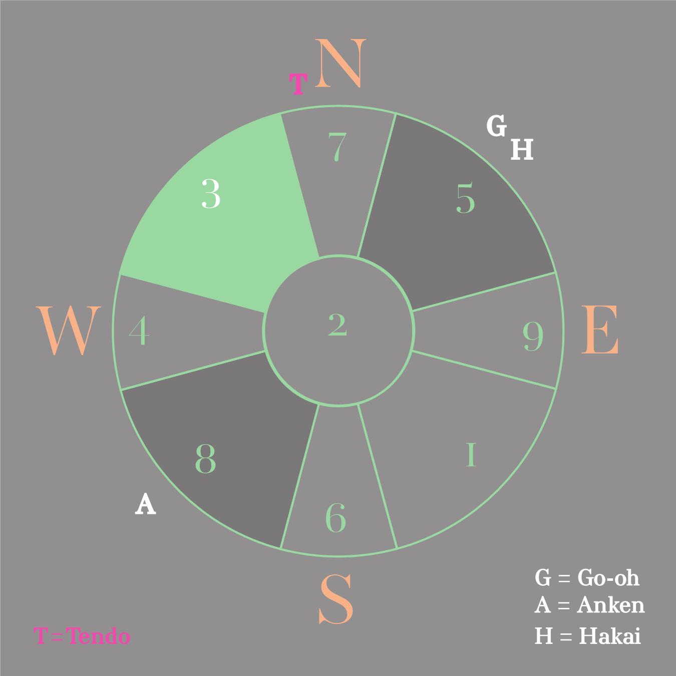 In August, Star #8 locates on south-west over Star #2’s original compass chart with Anken-Power . And Star#8 locates over Star #1 on yearly compass chart.