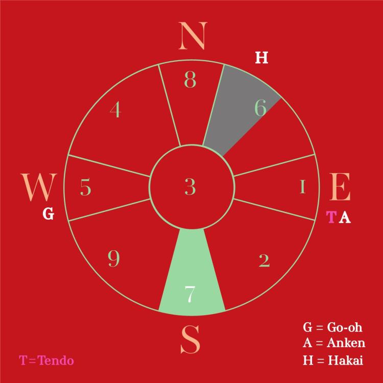 In August, Star #1 locates on southeast over Star #4’s original compass chart.and star#1 locates over star #3 with Anken-Power on yearly compass chart.