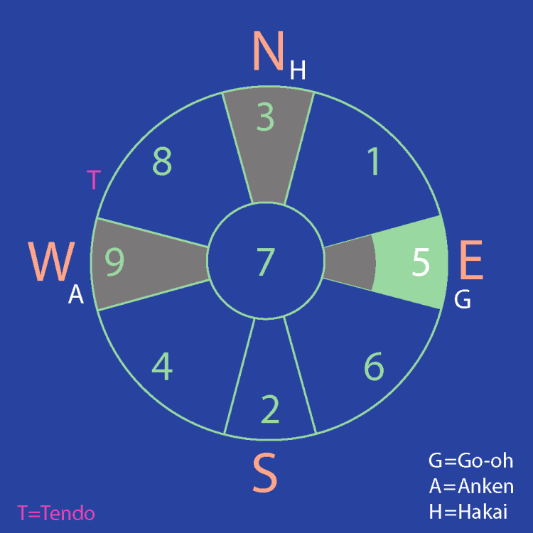 Star #9 resides in the west, Star #7’s fixed position, and is accompanied by Anken Power (which weakens wisdom). Additionally, Star #3 carries Hakai Power (destructive energy). Star #7 governs the mouth, and Star #3 governs the voice—making it essential to be mindful of what you say. Misstatements or thoughtless comments can quickly go viral on social media and cause unintended trouble.